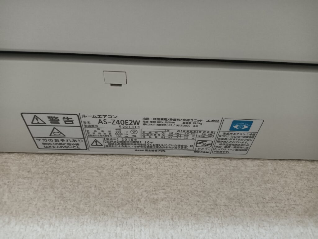 今回のエアコンは、富士通ノクリアシリーズの中でも上位機種にあたり、
