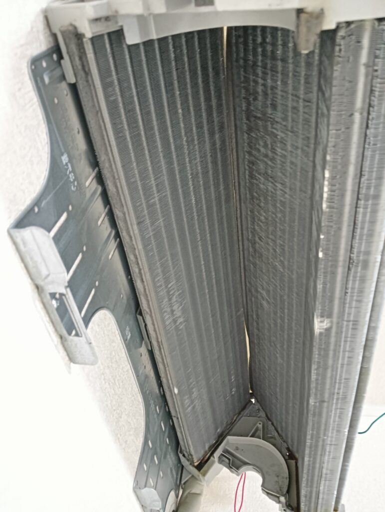 アルミフィン(熱交換器)の内側にも黒カビが繁殖していました。