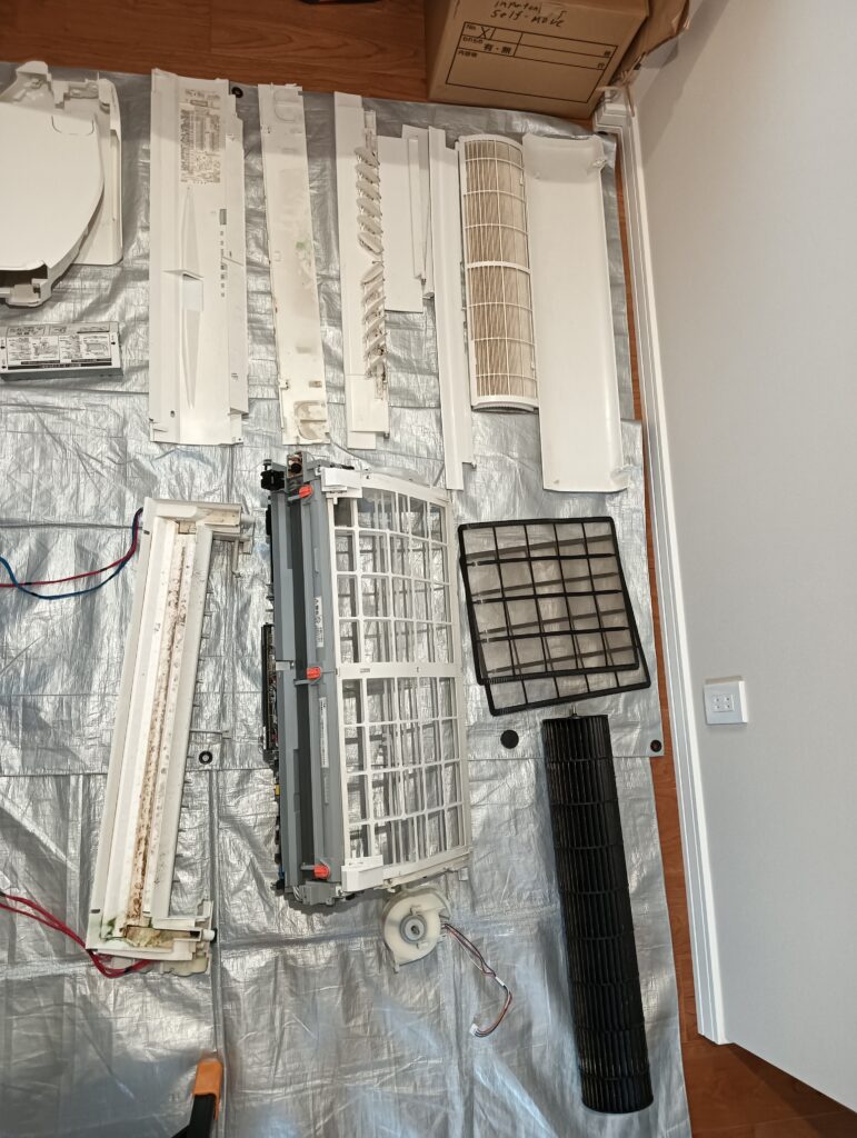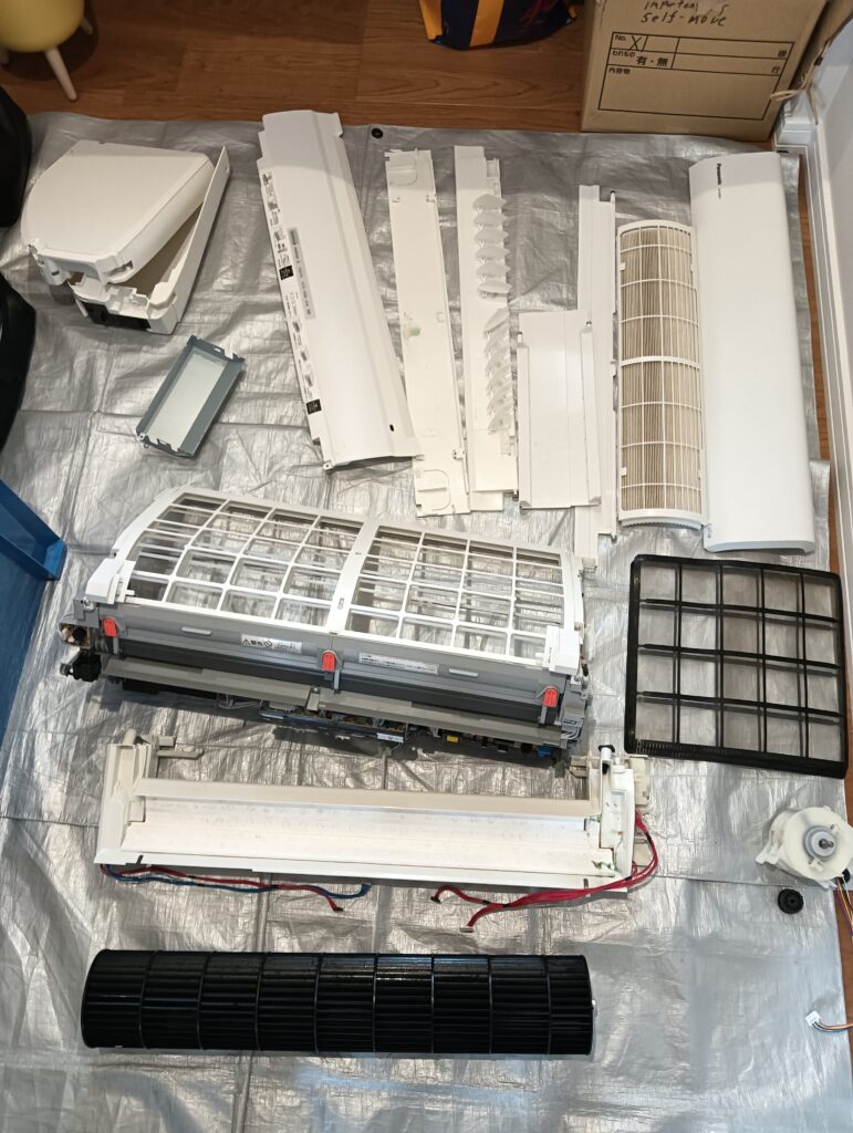 エアコンのカビ汚れや匂いがきついなど徹底的に汚れを落とすには、完全分解洗浄がおすすめです‼️