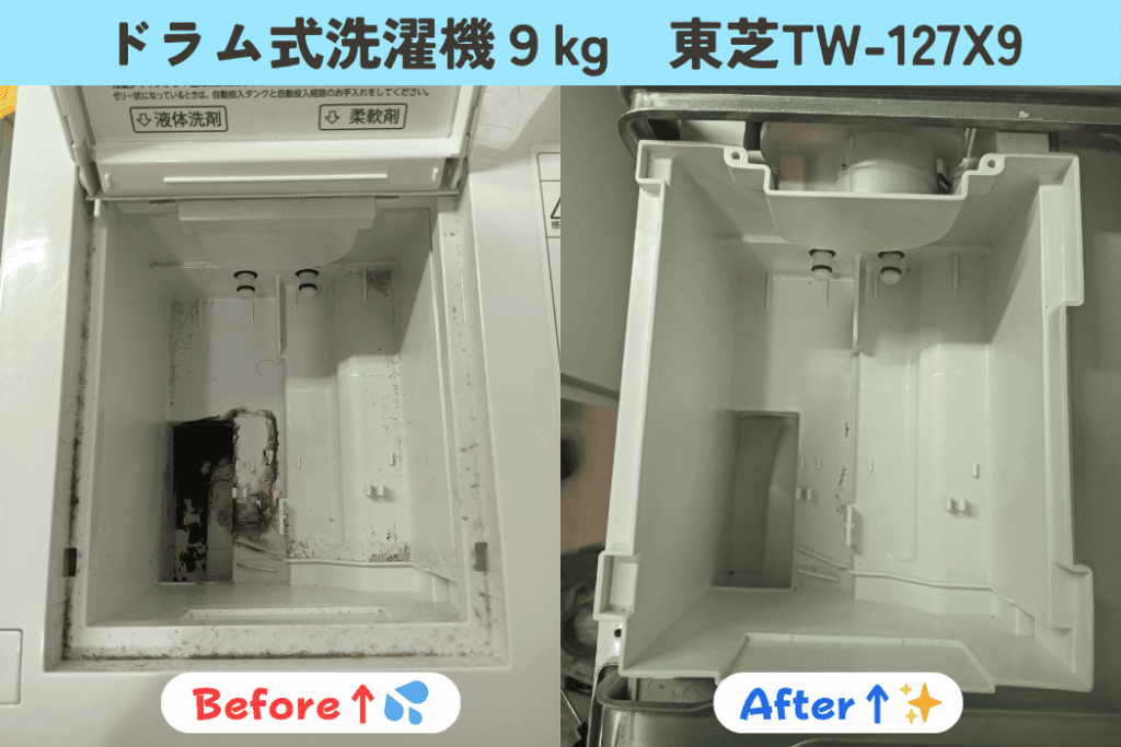 洗濯機本体の定期的なクリーニングの重要性を改めて実感できる事例です。